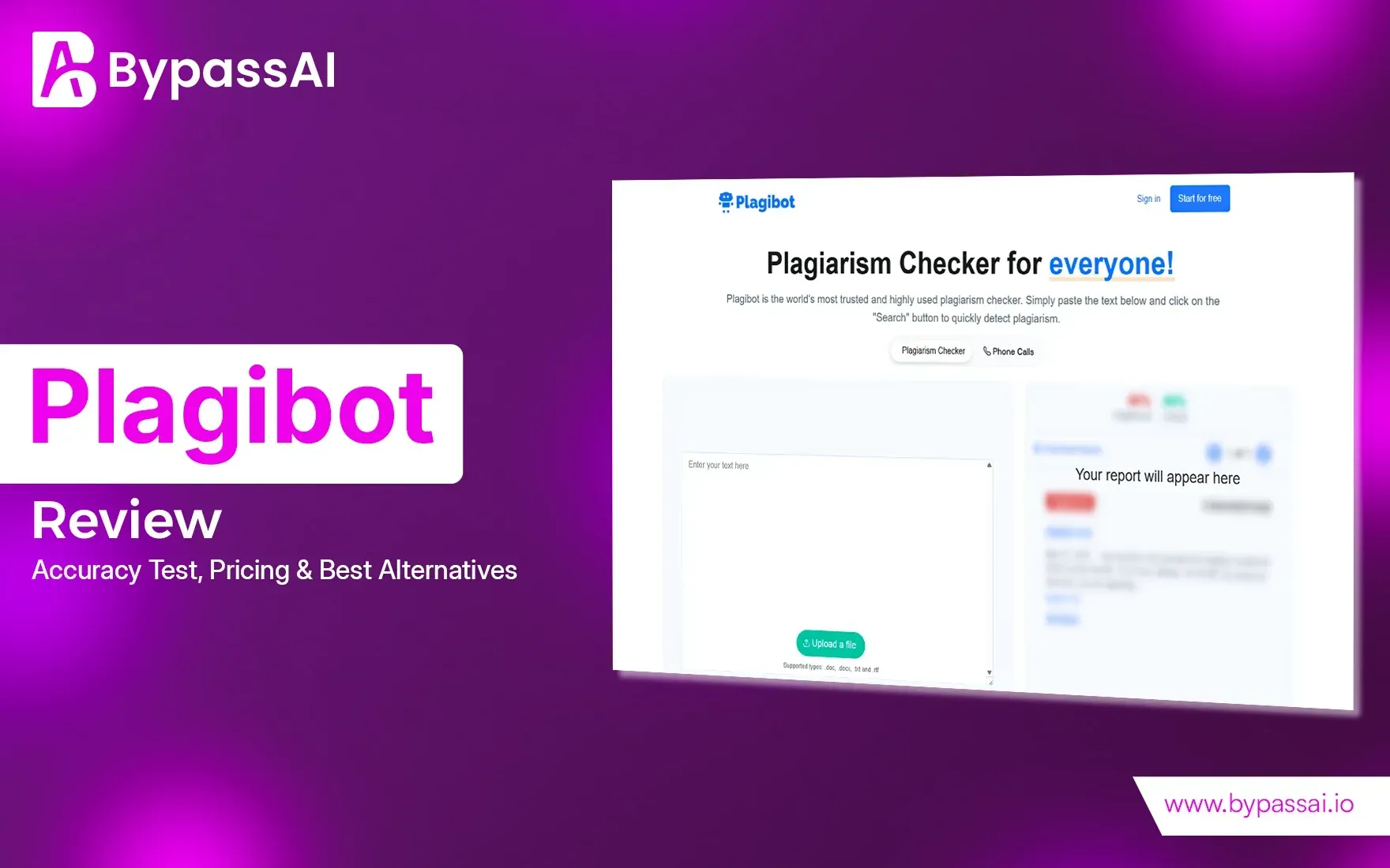 In this blog, the plagiarism detection software Plagibot is tested for accuracy and pricing while being simultaneously compared to other such tools. The final verdict reveals that although Plagibot is cheap and user-friendly, it is unable to effectively detect AI-based or paraphrased content. By contrast, Bypassai.IO, Grammarly, Quetext, and Scribbr provide much more reliable results in detection, especially for academic or professional use. So the blog suggests that serious users must consider these alternatives to achieve better results.