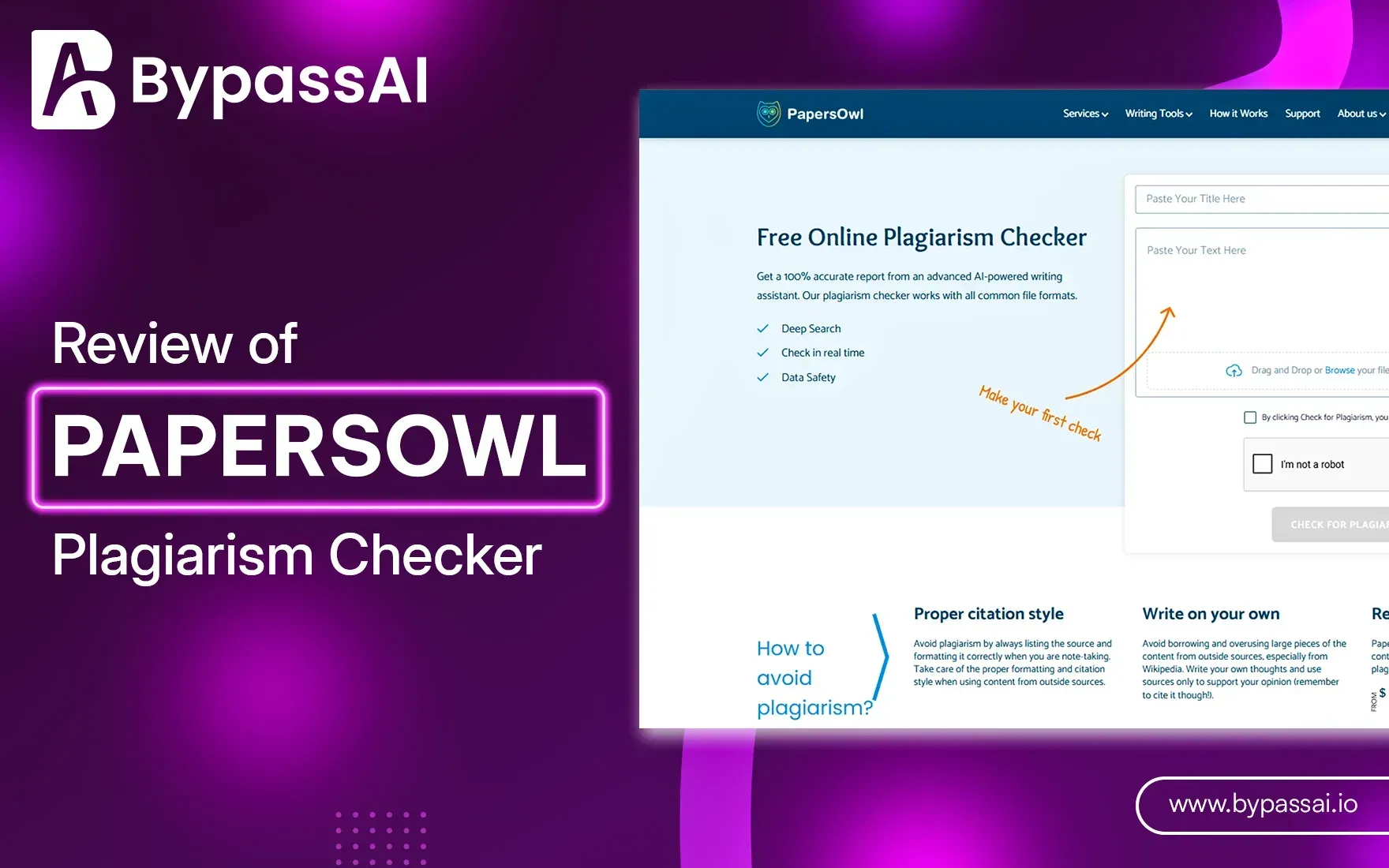 Plagiarism detection is essential for students, educators, writers, and professionals all need the tools to guarantee the originality of their work and avoid duplication issues. There are many such options, and one of them includes PapersOwl Plagiarism Checker. But is it reliable? This review covers most of its features, accuracy, and pricing and goes on to compare it against BypassAI Plagiarism Checker. A real-world test will determine whether it really is up to par, and then we will consider other options in plagiarism detection. Finally, it will be decided if PapersOwl is the best tool for duplicate content detection.